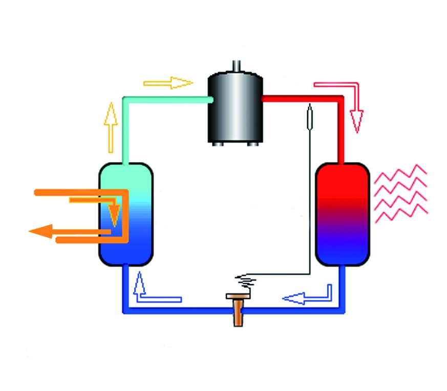 蒸發(fā)后的運(yùn)行工質(zhì)被吸入壓縮機(jī),通過壓縮機(jī)的壓縮功能,將工質(zhì)壓縮成高壓高溫氣體,使其
